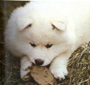bas. C'est bizarre de voir naître des chiots,