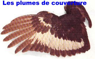 Le duvet se trouve sur le ventre, les rémiges se trouve sur ailes et c'est surtout grâce à ces plumes que l'oiseau peux voler. Les rectrices sont sur le ventre et permettent de maintenir l'oiseau en équilibre. Et les plumes de couvertures se trouvent sur le dos et tiennent chaud à l'oiseau pendant le vol.