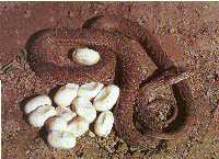 La majorité des serpents,sant doute plus de 70% des espèces, est ovipare, c'est à dire que plus ou moins longtemps après la l'évolution, les femelles pondent des oeufs protégés par une coquille résistante.