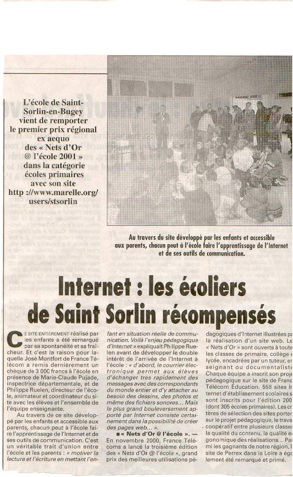 Voici l'article paru dans "le progrès", suite aux résultats des nets d'or organisés par France Télécom.