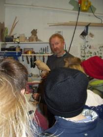 et des jouets pour bébé. Il travaille avec 4 sortes d' arbres. Il y a le chêne, le hêtre, le sapin, et