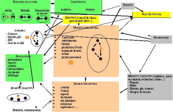 Le temps de travail personnel est ouvert aussi bien aux entraînements guidés par moi qu'aux entraînements motivés par des consolidations ou apprentissages décidés par les enfants (certains enfants ont comme projets personnels de dépasser leurs faiblesses), qu'aux écrits pour le journal, la correspondance, les documents, qu'aux préparations d'exposés ou autres projets personnels...